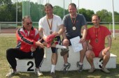 Das Senioren-Werferteam des MTV Aurich konnte am vergangenen Wochenende bei den Landesmeisterschaften im Wurf-Mehrkampf (Hammeruwurf, Diskuswurf, Kugelstoß, Speerwurf, Gewichtswurf) den Vorjahreserfolg wiederholen. Allerdings gab es in den eigenen Reihen eine kleine Überraschung, denn nicht der favorisierte Vorjahressieger Michael Arjes gewann den Titel in der Alterklasse M 35, sondern sein Vereinskamerad Alexander Meding siegte mit neuer persönlicher Bestleistung vor seinem Vereinskameraden. Nach dem Mehrkampf stand es 2725 Punkte zu 2617 Punkte.